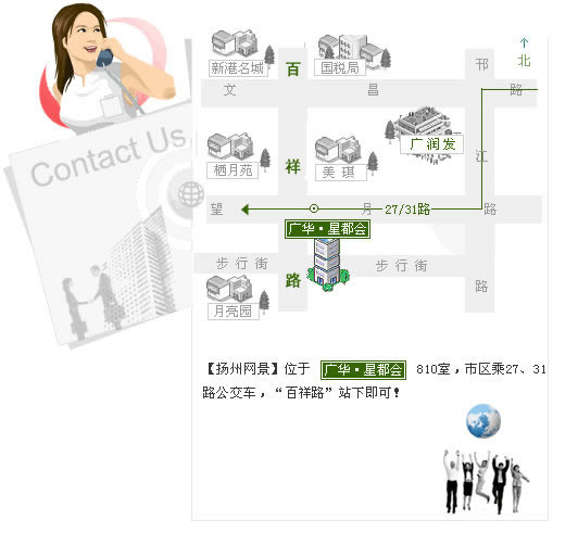 为提高办公环境,我司已经从原来的维扬路25号创业服务中心,搬迁到百祥路和望月路交界扬州市百祥路111号(广华·星都会)写字楼810#,原来的号码0514-7871244已经停用,新的号码为:0514-5556635、5556636希望广大新老客户相互转告。