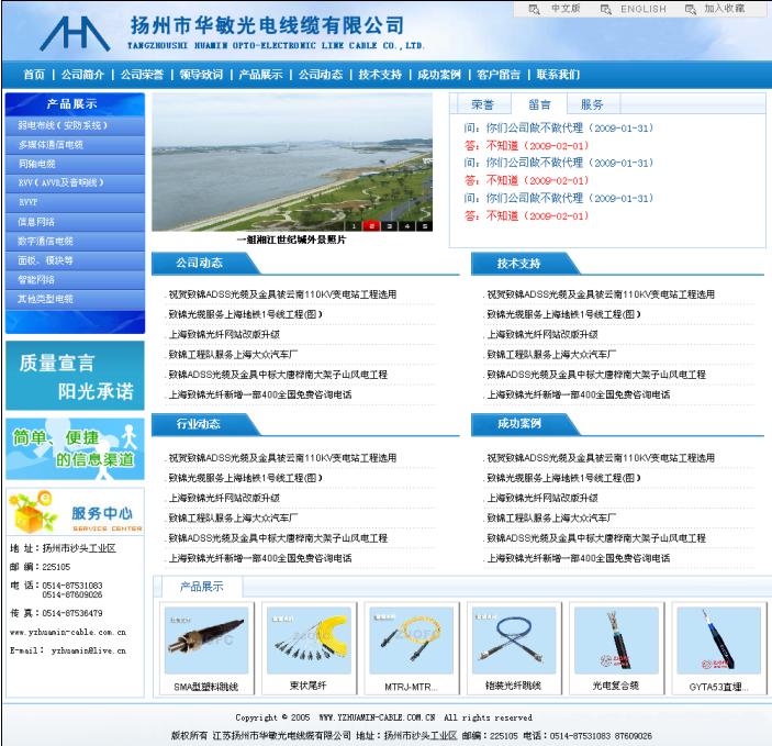 签约扬州华敏光电线缆公司网站开发